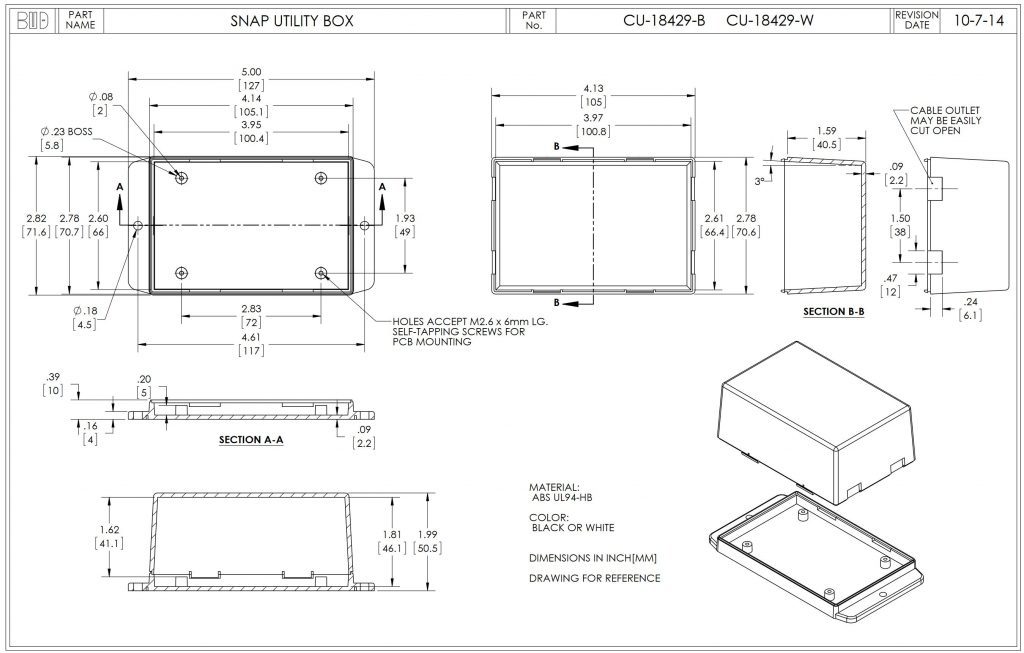 CU-18428-B 4.13" x 2.76" x 1.40" 4.132.761.40 3.98" x 2.60" x 1.24"