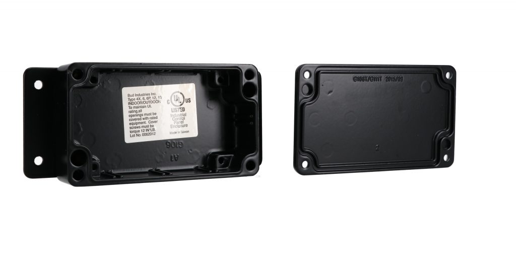• 0.09″ External mounting brackets allow the box to be mounted on a wall or panel without having to remove the cover and exposing internal components to the environment