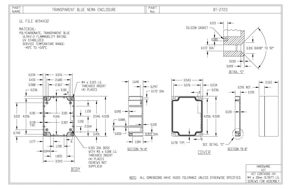If you’re looking for a Transparent Blue Polycarbonate NEMA rated or IP rated enclosure for a printed circuit board (PCB) that measures 4.16" x 3.18" x 1.93", then this enclosure is an excellent choice.
