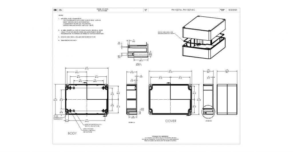 Model # PN-1327-A PN-A Series IP68 Plastic NEMA 6P Box
