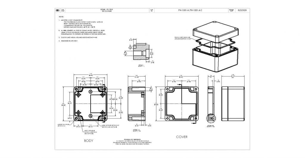 Model # PN-1331-A PN-A Series IP68 Plastic NEMA 6P Box
