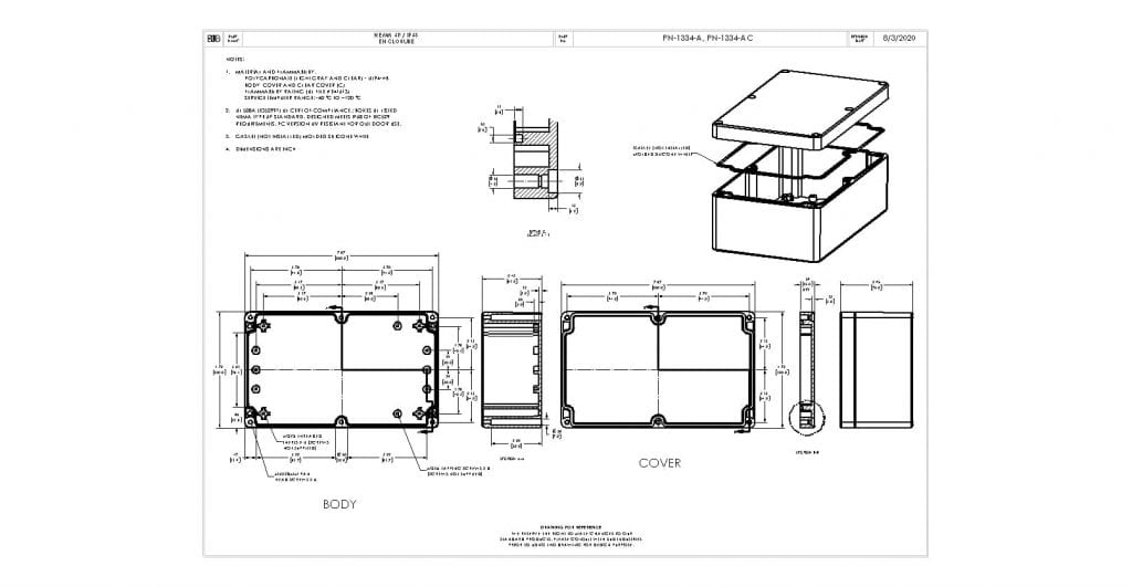 Model # PN-1334-AC PN-A Series IP68 Plastic NEMA 6P Box