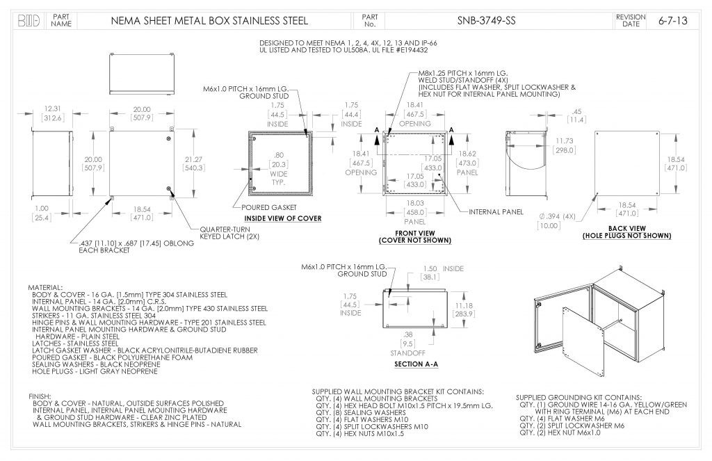 Model # SNB-3749-SS SNB Series Stainless Steel Box